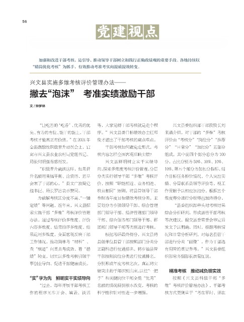 定绩”等问题,近年来,兴文县探 要划分为乡镇领导干部、综合管理 “县委组织部牵头对考核结果