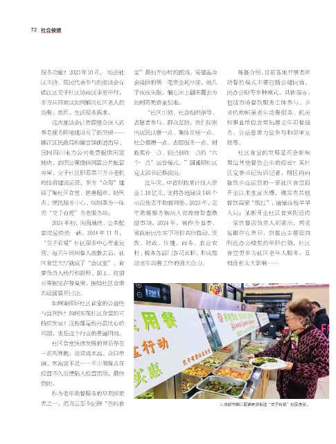 的“交子有爱”为老服务站。 年助餐服务被纳入省政府督查激 入局;某新开业社区食堂附近的