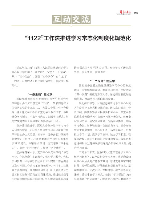 近五年来,绵阳市第三人民医院党委理论学习 群众需求等各类问题 10 余项,理论学习不断往深