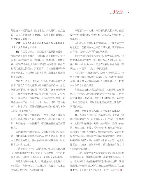 记者:未来几年推进乡村全面振兴的主要目标是 六是深入推进乡村生态文明建设,加快发展方式