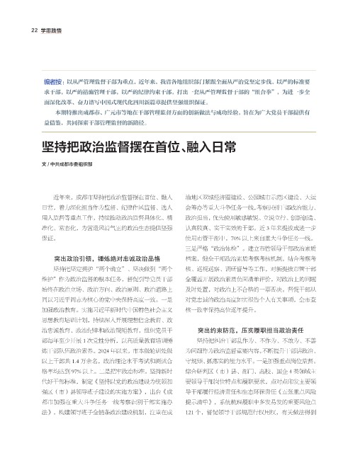 本期特推出成都市、广元市等地在干部管理监督方面的创新做法与成功经验,旨在为广大党员干部提供有