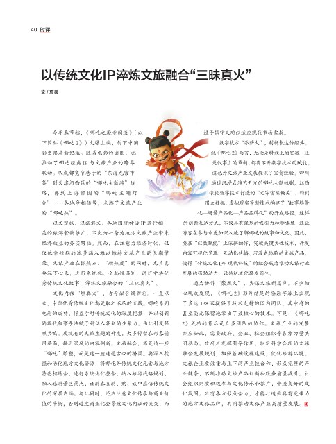 “哪吒”雕塑,而是建一座连通古今的桥梁。要深入挖 融合发展规划,加强基础设施建设,优化旅游环境。