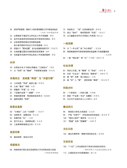 58 “小舞台”上的“大幸福” / 徐亚宁 96 持续发力深化大抓基层 / 王兆伟