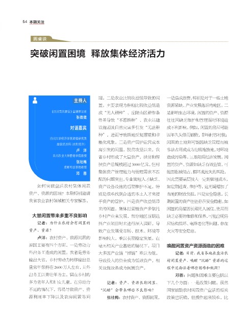 源利用率下降以及农房闲置等问 张社梅:农村资产、资源闲置, 政策已明确,但操作起来较难,比
