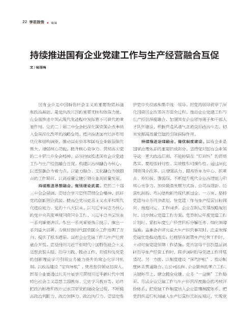 向、提供了根本遵循。国有企业党建工作与生产经营 党建优势推动落实;经理层在部署生产经营工作时,