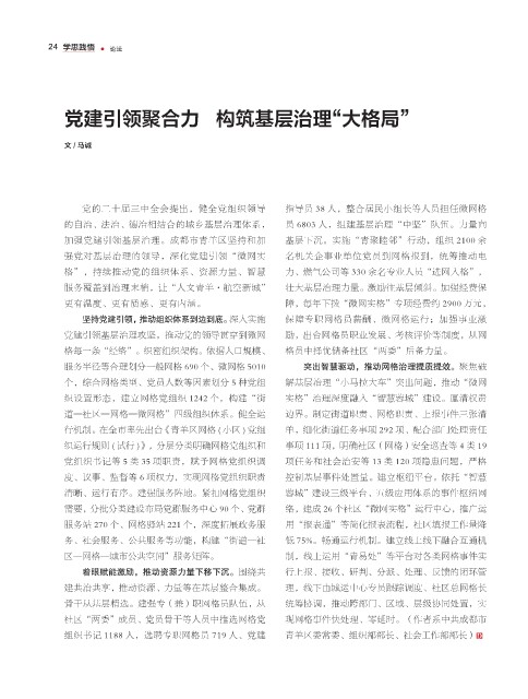 织设置形态,建立网格党组织 1242 个,构建“街 实格”治理深度融入“智慧蓉城”建设。厘清权责