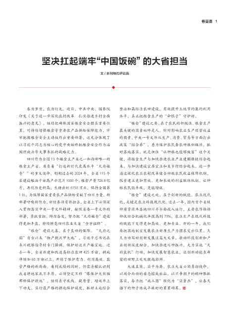1 位,为保障国家重要农产品供给贡献了四川力量。新 “粮仓”建设之效,在于创新的赋能。农业现代