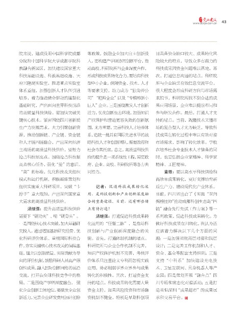 局。二是围绕产学研深度融合, 强 持的堵点。科技成果转化需要大量 川专场和常态化对接活动;五是打