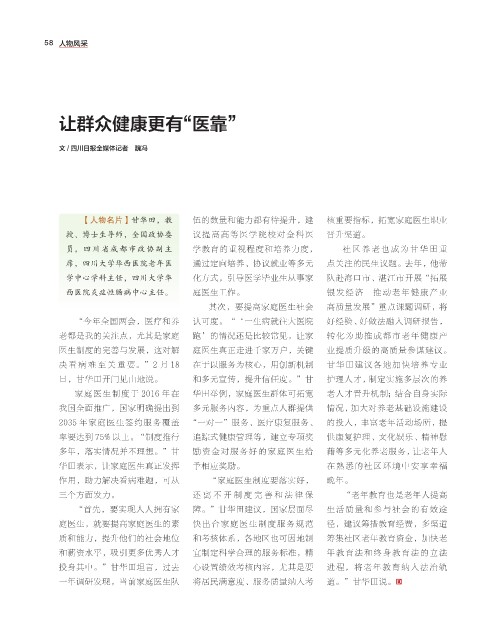 【人物名片】甘华田,教 伍的数量和能力都有待提升,建 核重要指标,拓宽家庭医生职业