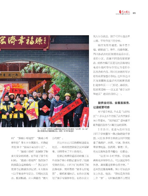 治、配送畅通、业主满意的“最大 划了骑手专属停车位,有的小区实 二个‘家’,有时候凌晨不方便回