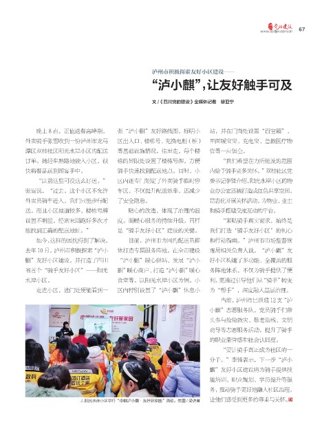 麒”友好小区建设,并打造了四川 “泸小麒”暖心驿站、发展“泸小 好小区构建了多功能、全覆盖的服
