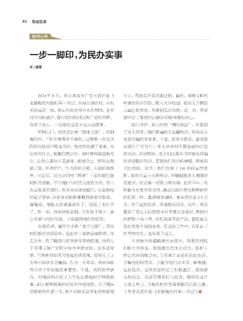 村民解决实际困难,是驻村干部的重要职责。在 村里的变化,也收获了成长。