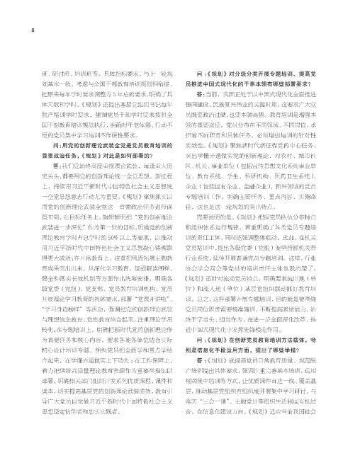 问:用党的创新理论武装全党是党员教育培训的 实效性。《规划》聚焦新时代新征程党的中心任务,