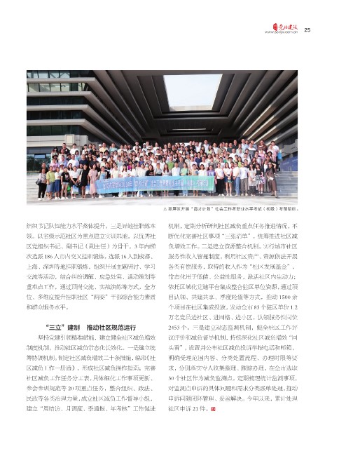 组织书记队伍能力水平整体提升。三是异地挂职练本 机制,定期分析研判社区减负重点任务推进情况,不
