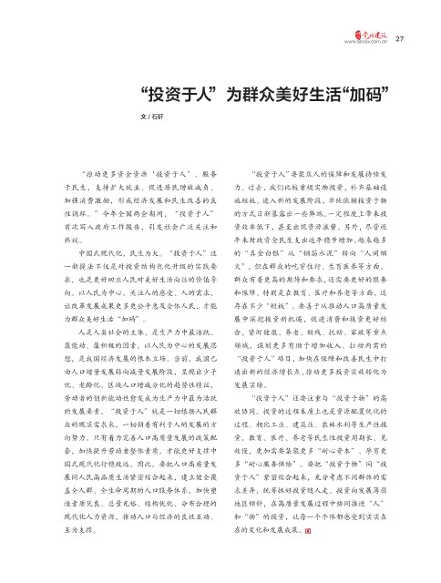 想,是我国经济发展的根本立场。当前,我国已 “投资于人”项目,加快在保障和改善民生中打