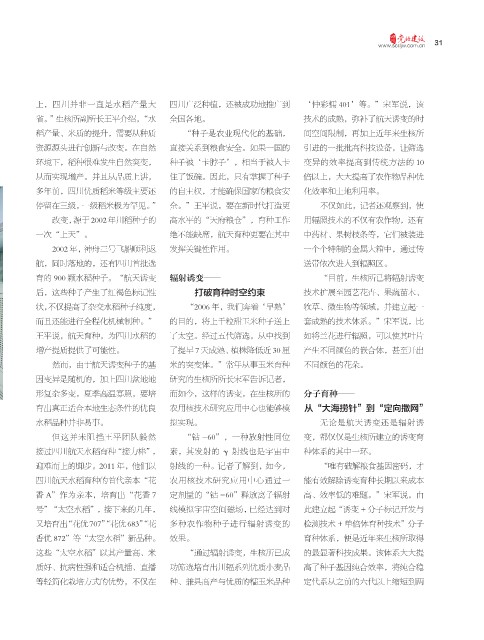 改变,源于 2002 年川稻种子的 高水平的“天府粮仓”,育种工作 用辐照技术的不仅有农作物,还有