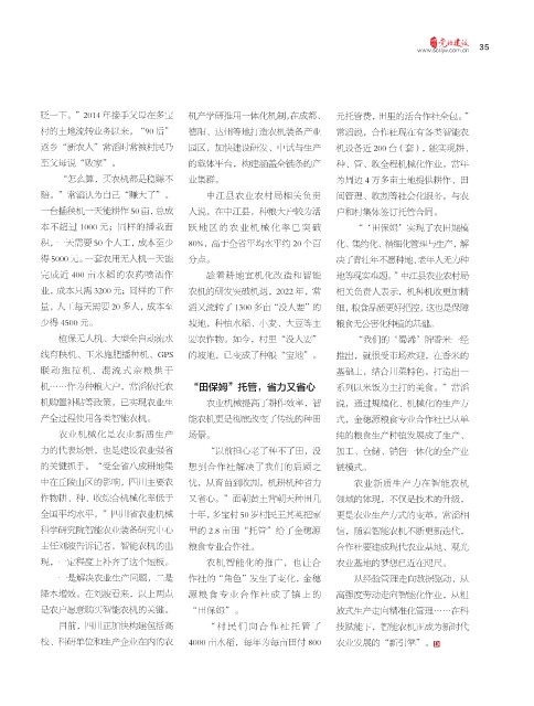 目前,四川正加快构建包括高 “村民们向合作社托管了 技赋能下,智能农机正成为新时代