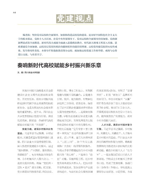振兴,关键是把基层党组织建好、建 余支,近三年来,逾万人次师生深 是乡村振兴的基础。四川农业大学