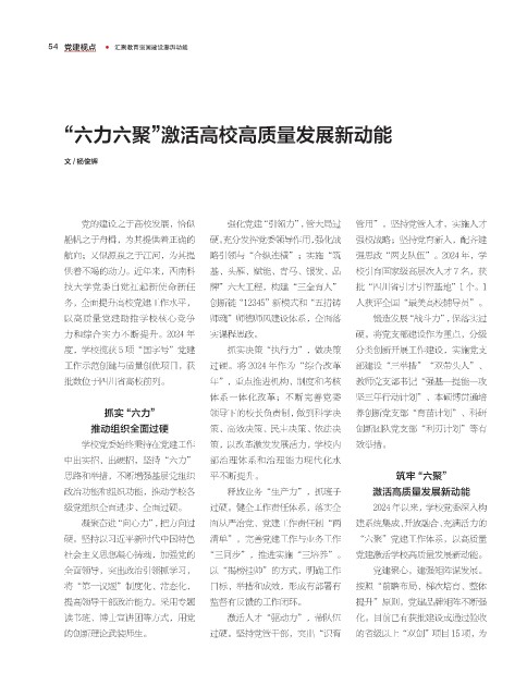 技大学党委自觉扛起新使命新任 牌”六大工程,构建“三全育人” 批“四川省引才引智基地”1 个。1