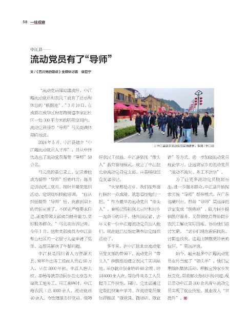 优选出了流动党员帮带“导师”50 好农民工权益,中江县依托“带头 讲”等方式,进一步加强流动党员