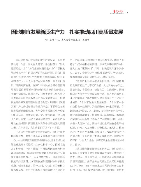 因地制宜发展新质生产力 扎实推动四川高质量发展