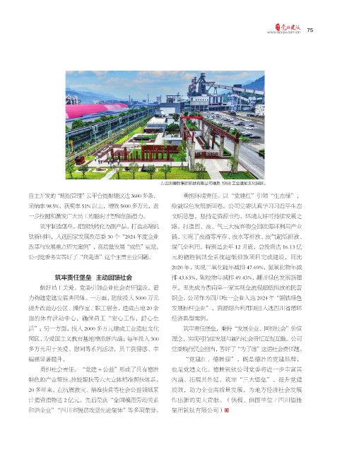 力构建党建发展共同体。一方面,陆续投入 5000 万元 钢企。公司作为四川唯一企业入选 2024 年“钢铁绿色