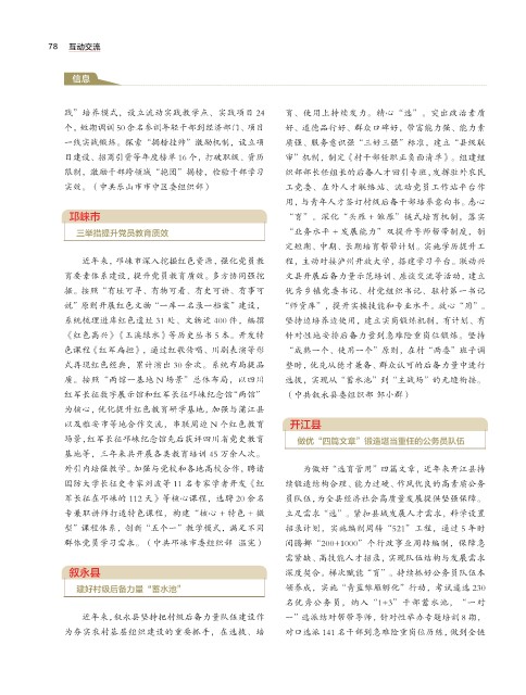 外引内培强教学。加强与党校和各地高校合作,聘请 为做好“选育管用”四篇文章,近年来开江县持