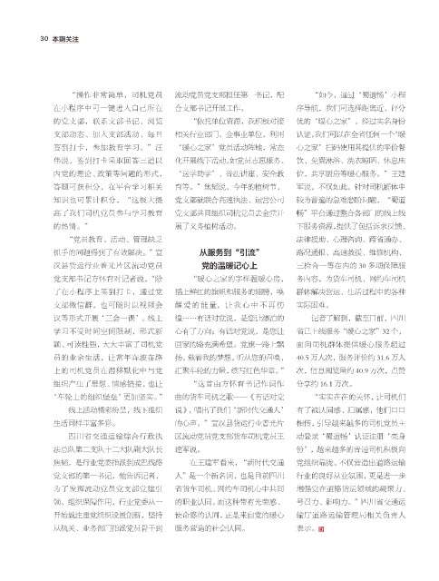 颖、可读性强,大大丰富了司机党 回家的路充满希望。党旗一路上飘 面向司机群体提供暖心服务超过