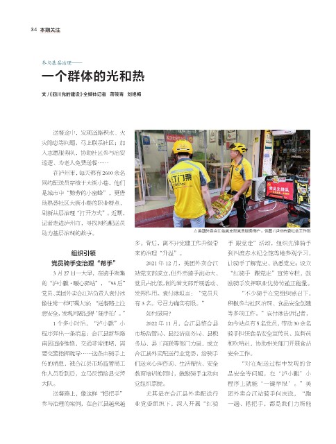 党员骑手变治理“帮手” 2021 年 12 月,美团外卖合江 让骑手了解党史、熟悉党史;设立