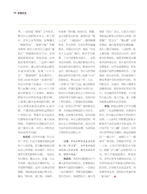 提供政策咨询、技能培训、法律 餐、子女托管等多元服务。二是强 责任区等载体,鼓励支持新就业群