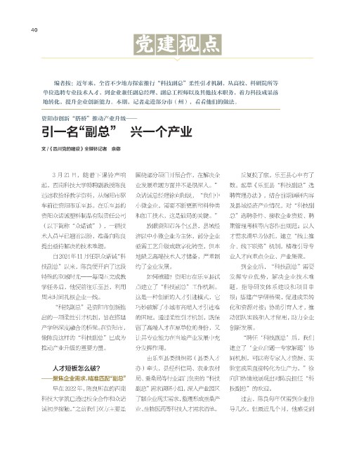 学任务后,他便前往乐至县,利用 点建立了“科技副总”工作机制。 题,指导研发体系建设和项目申