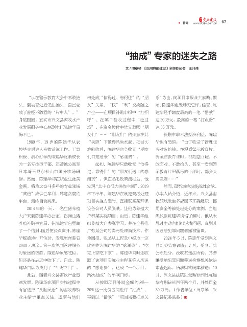 华疑惑地打开信封,发现里面装着 为回报,张某从工程款中提取一定 2024 年 5 月,陈建华受到兴文