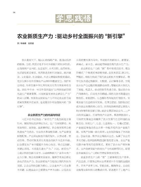 力是以科技创新为主导、以战略性新兴产业和未来产 出农业新质生产力的时代特征和发展优势。
