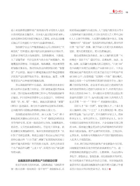 家—技术总师—领域首席—骨干青年”的创新体系,系 系四川省农业科学院党委书记、院长)
