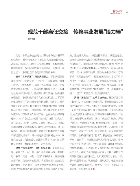 进行“1 对 1”谈话,实现既“交家底”更要“交真心”, 课”,离任干部必须协助,防止“断崖式”脱节。严把