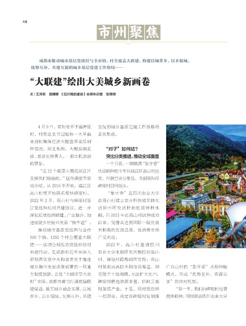成都市推动城市基层党组织与全市镇、村全覆盖大联建,构建以城带乡、以乡促城、