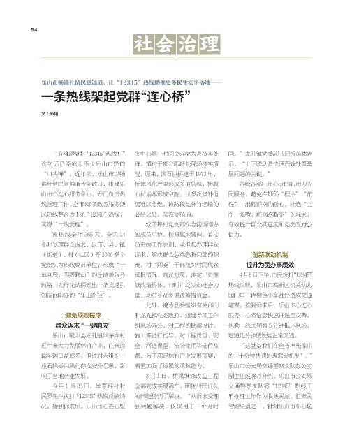 这句话已经成为不少乐山市民的 理,镇村干部立即赶赴现场核实情 示,“上下联动是快速高效处置基