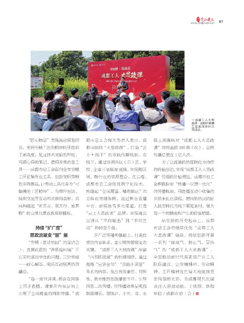 “匠心物语”美陈流动展览项 都市总工会相关负责人表示,成 级主流媒体对“成都工人大思政