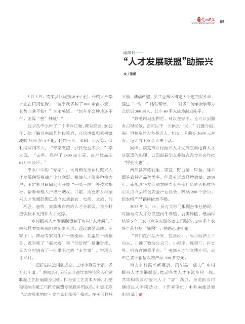导,帮助种粮大户增产增收。目前,南充市乡村振 牵头成立县特色农业产业协会,吸纳 200 个会员,