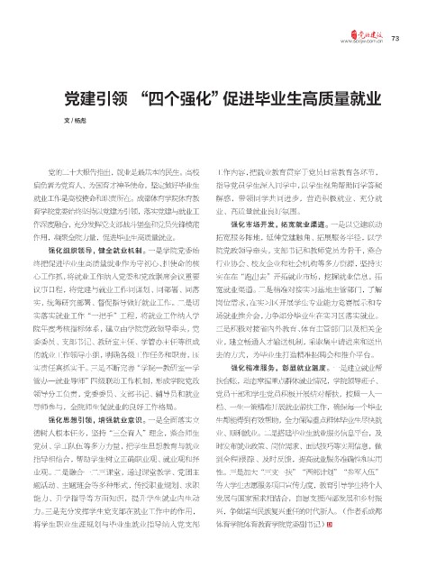 力。三是充分发挥学生党支部在就业工作中的作用, 兴,争做堪当民族复兴重任的时代新人。(作者系成都