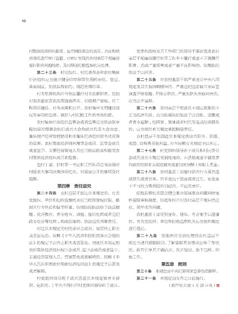 职、免职的,1 年内不得担任村党组织领导班子成员。 (新华社北京 4 月 20 日电)