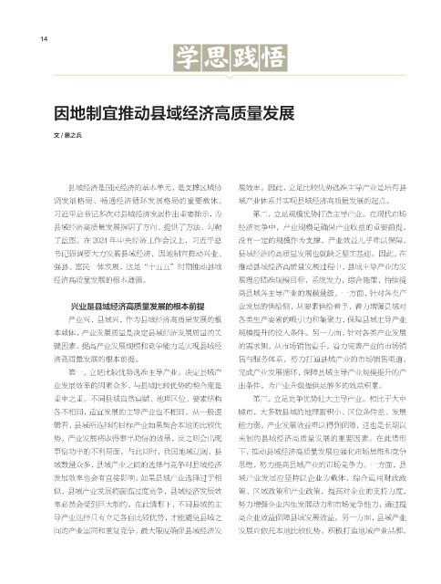 因地制宜推动县域经济高质量发展