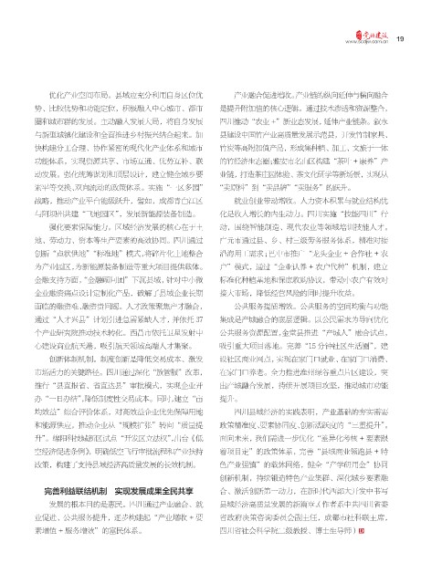 发展的根本目的是惠民。四川通过产业融合、就 县域经济高质量发展的新篇章。(作者系中共四川省委