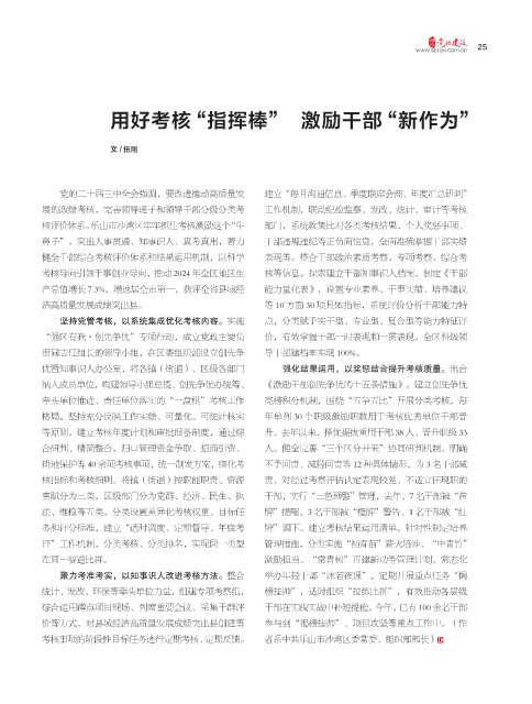 价等方式,对县域经济高质量发展成绩突出县创建等 参与到“揭榜挂帅”、项目攻坚等重点工作中。(作