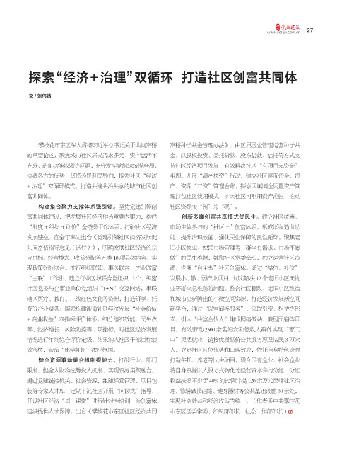 探索“经济+ 治理”双循环 打造社区创富共同体