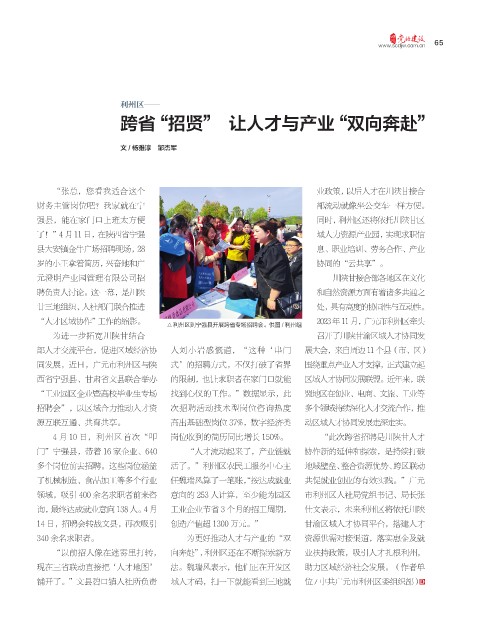 4 月 10 日,利州区首次“叩 岗位收到的简历同比增长 150%。 “此次跨省招聘是川陕甘人才