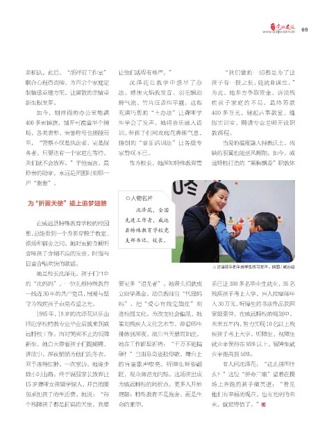 1995 年,19 岁的沈泽花从乐山 进校园文化。为改变社会偏见,她 家级荣誉。在威远特校的规划中,