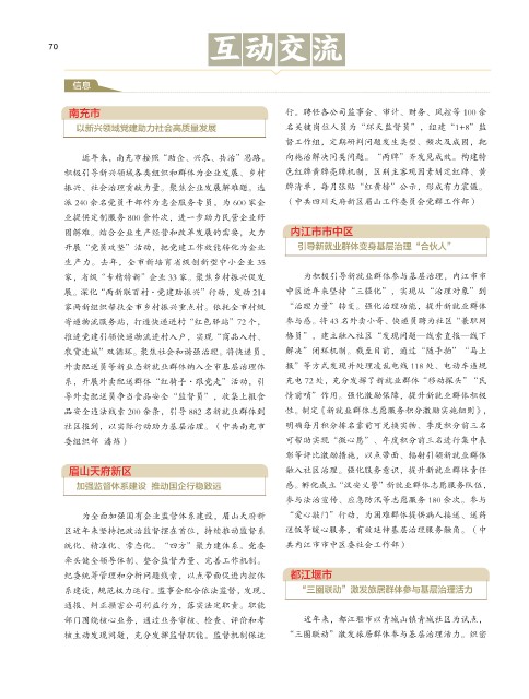 家,省级“专精特新”企业 33 家。聚焦乡村振兴促发 为积极引导新就业群体参与基层治理,内江市市