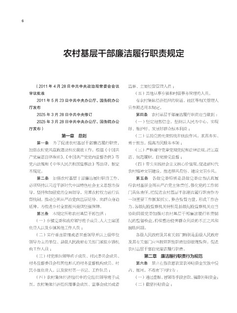 2025 年 3 月 28 日中共中央修订 第四条 农村基层干部廉洁履行职责应当做到 :
