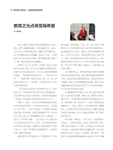 的孩子由不识字的老人照顾。教育资源的匮乏如同大 目。同步开展的教育实践活动形成有效补充,通过